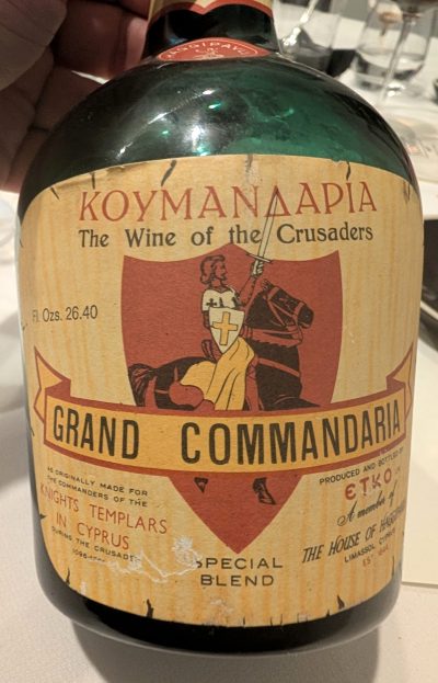 Not masked. Mavro (red) & Xynisteri (white). Ripe grapes left to dry in the sun, then fermented. The style is typically 390 to 450g/L residual sugar and between 15-20% ABV (This one likely to be at the lower end, and not fortified). Don’t be tricked by the 1926 age; it’s a solera, so there is a small portion of grapes of that age, and the majority from later. But’s still a magic number! And even a smidge of old material makes a big difference to the taste, and with evaporation and careless record-keeping, calculating average age is irrelevant. Plus this was believed to have been bottled in the 1970s.