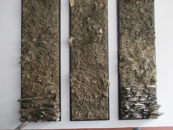 First we were shown profiles of the soil, showing the slates and degree of decomposition. L-R is Zeltinger Himmelreich (kingdom of heaven), Zeltinger Schlossberg (hill of the castle), Zeltinger Sonnenuhr (sundial).