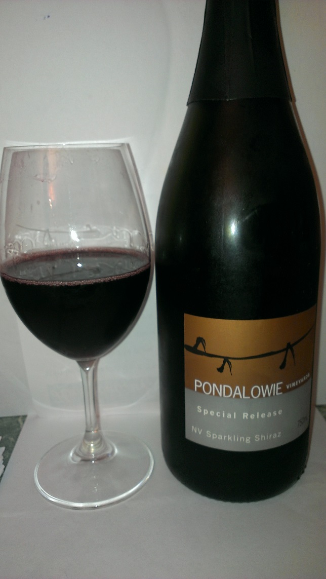 Enough preamble- the Pondalowie is a blend of several vintages. It’s a very dense blood red/black colour. The bubbles are not very persistent, but thankfully the wine is at the drier end of the spectrum – my guess is about 15g/l. incidentally the label depicts a stylised dog – not barbed wire as I once suspected, and is sealed with a diam cork. Its all about intense ripe blackberry, fruitcake spices, other dark fruits including cherry. It walks the line of combining long savoury notes and the creaminess of the palate. How could anyone not enjoy this? Score 91, Drink now- 2020
